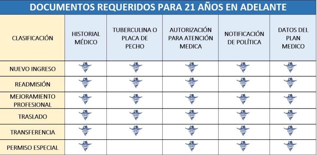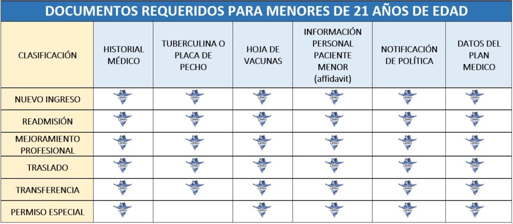 - Lista de Requisitos Médicos para Procesar la Matrícula